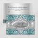 Pretty Teal & Silver Damask Sweet 16 RSVP Card
