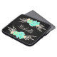 Laptop sleeve featuring a custom monogram and teal and silver flowers