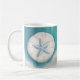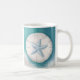 Pretty starfish on a sand dollar teal and white beachy coastal coffee mug.