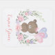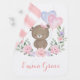 This adorable baby blanket features a cute teddy bear holding two heart-shaped pink & purple balloons adorned with elegant floral wreath.