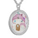 I chose gold plated so that the metal would not react with my skin oils and perspiration. But, I changed the necklace from the gold plated one to a sterling silver. My skin cells will tarnish the silver. But it will not look as bad if some portion of the gold plated necklace somehow became compromised. Zazzle did a find job turning the picture into a pendant for me. As you can see, the colors and the printing of the final product, match the preview. The picture I took is not very clear. But I am pleased with the product I received.