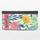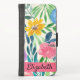 A cute tropical and floral design with pink, yellow, blue and purple flowers and a pink rectangle at the bottom where you can put your name or any text you choose.