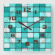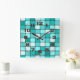 Pretty Turquoise Aqua Teal Mosaic Tile Pattern Square Wall Clock