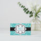 A cute, bright blue green shade of turquoise and white colored paisley patterned background print, with a black polkadot edged ribbon stripe and a curly swirly girly tag area with curves and dainty dots for your initials and name in coordinating teal or turquoise shade and black. The reverse side has three customizeable text fields for your personal or business contact information. Available in other shades and colors in store.