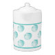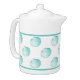 Stylish white ceramic coffee pot, with graphics of turquoise colored seashells, around the middle of the pot. A solid turquoise line borders the top and bottom of the shell pattern. Customize to add text to this lovely tea / coffee pot.