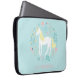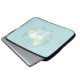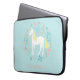 This personalized unicorn computer sleeve features a cute whimsical unicorn design with flowers on a pastel aqua background. Personalize the text with your name or initials.