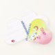 A pretty unicorn heart shape notebook, this design features pink and yellow background. Your name is written at the top in lovely pink girly font. There is a colorful rainbow with clouds and cute unicorn with hearts above. Personalize yours today!