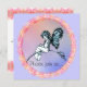 A vintage storybook fairy illustration was used in this sweet design. The little fairy girl , in book print blue, with butterfly wings, is sitting on a slender branch. A pink floral border encircle the fairy in front of a pale blue and pastel background. A wonderful design for a little girls birthday party, baby shower or turned into a birth announcement. Use Zazzle's easy to use customization feature to personalize. Matching envelopes are also available.