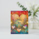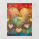 Pretty vintage hearts in tan, red, blue and turquoise missing you postcard;