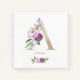 Pretty Violet Floral Gold Foil Letter A Monogram Notebook