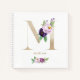 Pretty Violet Floral Gold Foil Letter M Monogram Notebook