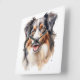PRETTY WATERCOLOR AUSTRALIAN SHEPHERD DOG SQUARE WALL CLOCK