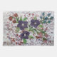 Tea towel with a pretty watercolor floral design with deep purple, and greens and a touch of blue