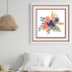 Pretty Watercolor Flowers Black Lines Peach Border Poster