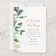 This simply chic wedding invitation features pretty dusty blue and white flowers with lush greenery leaves and the couple's names in gold color text.
