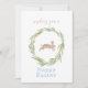 Pretty, watercolor Happy Easter card is perfect for remembering friends and family during the Easter season. The design is simple and cute with elegant, pastel color, watercolor wreath filled with pastel eggs and a soft bunny hopping. The fonts are clean modern, making this a on trend, sweet holiday card. Keep the greeting provided and simply replace your name and information, or create your own personal greeting, too. Both are possible with the customization tool.