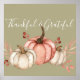 Pretty trio of watercolor pumpkins on sage green background with customizable "Thankful & Grateful" white text in modern script font