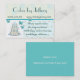 Elegant bakery business card done in tan, white, and teal, with a sweet icon of a wedding cake and pretty butterflies. Perfect for a bakery shop, party shop, or an independent custom baker. Customize the text fields to personalize for yourself or your shop.
