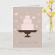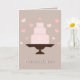 Send your well wishes to the newly wed couple with this pretty wedding congratulations greeting card done in a taupe color, with graphics of a pink and white wedding cake, on a brown stand. Light pink and darker pink small hearts surround the cake. White text, on the bottom reads, Congratulations. Inside of the card is decorated to coordinate with the front image of the card. Black text inside and the white text, on the front, is ready to personalize to read what you want.