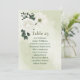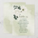 Beautiful botanical seating chart card featuring romantic white flowers with romantic dark green leaves.