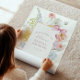 Bridal Shower Welcome Sign featuring a border of watercolor wildflowers with a pink bow. Customize with your information for the bride to be. Click "click to customize further" to change the font style, size or color.