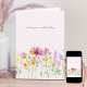 Pretty wildflower birthday card, titled wishing you a wild birthday, which you can edit if you wish, along with the greeting inside. The design has a floral border of colorful wild flowers in pink lilac orange and yellow with a pink bouquet on the back.