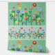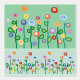 Repeat artistic pattern of Pretty wildflowers in horizontal stripes on a soft green and blue background