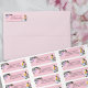 Wildflower return address labels with pretty arrangements of wild flowers in pink lilac blue and yellow. Girly and feminine cottage garden design on a pink background with white haze of watercolor wash.