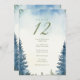 This table number card showcases a serene watercolor forest design with misty evergreens framing the card. The soft, calming blue and green tones blend seamlessly with the minimalist layout, creating an elegant yet rustic ambiance for any woodland or outdoor-themed event. The large table number is prominently displayed at the top, while the names of the guests are listed clearly below, making it easy for attendees to find their seats. Perfect for weddings or formal events that incorporate a natural, forest-inspired aesthetic.