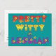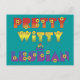Are you pretty and witty and Lesbian? Show your pride with this whimsical postcard! The text reads: “Pretty witty & lesbian”. The lettering has a blend of colors from the Rainbow Flag. You can change the background color, if you’d like. Want this or a similar design on another item? Browse my Errant shop.