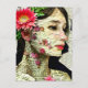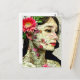 Pretty woman with pink flower in her hair art collage abstract ai art.