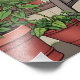 A relaxing Print to brighten your room. A gorgeous ai illustration done in a comic book style cartoon of a woman relaxing drinking coffee on her front porch on a nice summer day. Her cat sits beside her and she is surrounded by beautiful purple hanging and potted plants. Inspirational quotes.