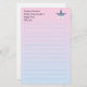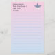 This pretty pink paper will make letter writing an enjoyable experience for children. It has a template at the side for your or their address and therefore means it will be printed on all the sheets you order and thus save time when writing. The faint lines help a child to write without being too noticeable and can be removed if not required. The pink color gradually alters to blue as you go down the paper and is not too strong and is designed not to dominate the writing. On the top right the star has a small cartoon with pretty stars, adding to the appeal for young children. See new version https://www.zazzle.com/pretty_writing_paper_for_children-256637087359747420