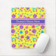 A pretty Mousepad to personalize, with a pattern of flowers in purple, turquoise, pink and orange on a sunshine yellow background, from a handpainted paper collage by Judy Adamson. You can easily change the background color, if you wish, by using the Edit button.