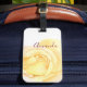 This luggage tag features a digitally hand painted pretty yellow rose with a pretty burgundy personalized name in a brush style font. This rose painting is original art from Dogwood & Thistle.