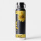 Pretty Yellow Sunflower Bride Name Wedding Water Bottle . Perfect gift for the Bride for her big day . The design has a black background with pretty yellow sunflower with the name written in a pretty font . Customized these by changing the name . For any further customization like color change etc , please feel free to contact me at mypaperlove2021@gmail.com