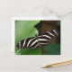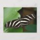 This stunning postcard features a photograph of a beautiful tropical butterfly. This species is called a Zebra Longwing Butterfly (Heliconius charithonia) and is covered in vivid black and white stripes across each wing. It comes from America. The photograph was taken using macro photography for a stunningly detailed result.