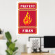 This red and gold fire prevention poster template has 3 areas, 2 that can be customized that can be customized.