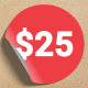 A simple typographic design with sample custom text "$25" in modern typography in white on a red background.