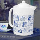 Pride and Prejudice Blue Toile Quotes Teapot