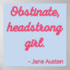 'Obstinate, headstrong girl.' Jane Austen quote from the book Pride and Prejudice.