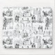 Mousepad featuring a black and white toile de jouy made of vintage Pride and Prejudice illustrations, from the 1894 edition.