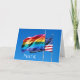 A bright note card featuring a billowing rainbow Pride flag along with an American flag, set against a brilliant blue sky. Celebrating a welcoming, diverse America. Photographed at Cherry Grove on Fire Island. Part of the Pride Collection.