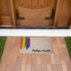 Personalized rainbow flag doormat printed with your name and pride flag inspired brush strokes.
