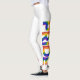 Celebrate your LGBTQ pride with the word "PRIDE" in bold rainbow colored letters running down the outside of each leg on a white background. Each letter contains pieces of red, orange, yellow, green, blue, and violet nested rings.