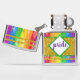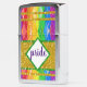 A delightful gold glitter and rainbow argyle diamond combination with customizable text area!