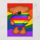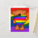 Cute postcard of a little teddy bear holding a giant rainbow pride heart