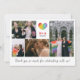 Charming photo collage wedding thank you card featuring four photos, a watercolor pride heart, your initials, and wedding date. Thank you so much for celebrating with us! is written in a gorgeous calligraphy script at the bottom. The back is lined so you can write a personal message by hand.