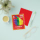 Pride party event. Hand in the colors of the LGBT flag on red background