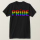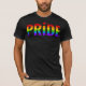 The word "PRIDE" is prominently displayed across the chest, with each letter filled in with a different color of the rainbow—red, orange, yellow, green, blue, and violet—representing the diversity and unity of the LGBTQ+ community.